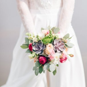 Пожалуй, самый важный элемент, который весь свадебный день будет на виду, попадёт на многие фото и, разумеется, на видео, — это букет невесты. Он должен быть не только красивым, но и удобным для королевы праздника, ведь ей придётся держать его в руках не один час. Кроме того, букет невесты должен обладать достаточной стойкостью, чтобы он не завял ещё до торжественной церемонии во время прогулки и фотосессии.